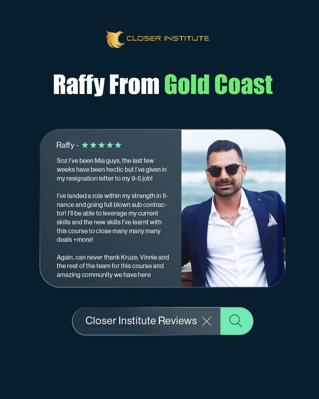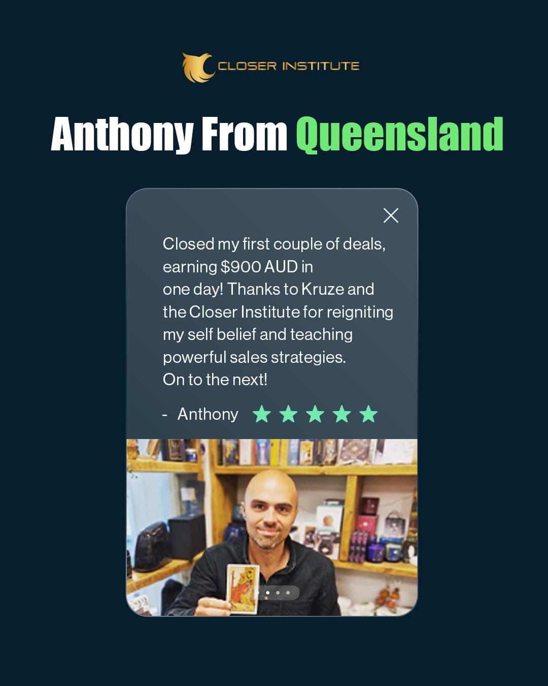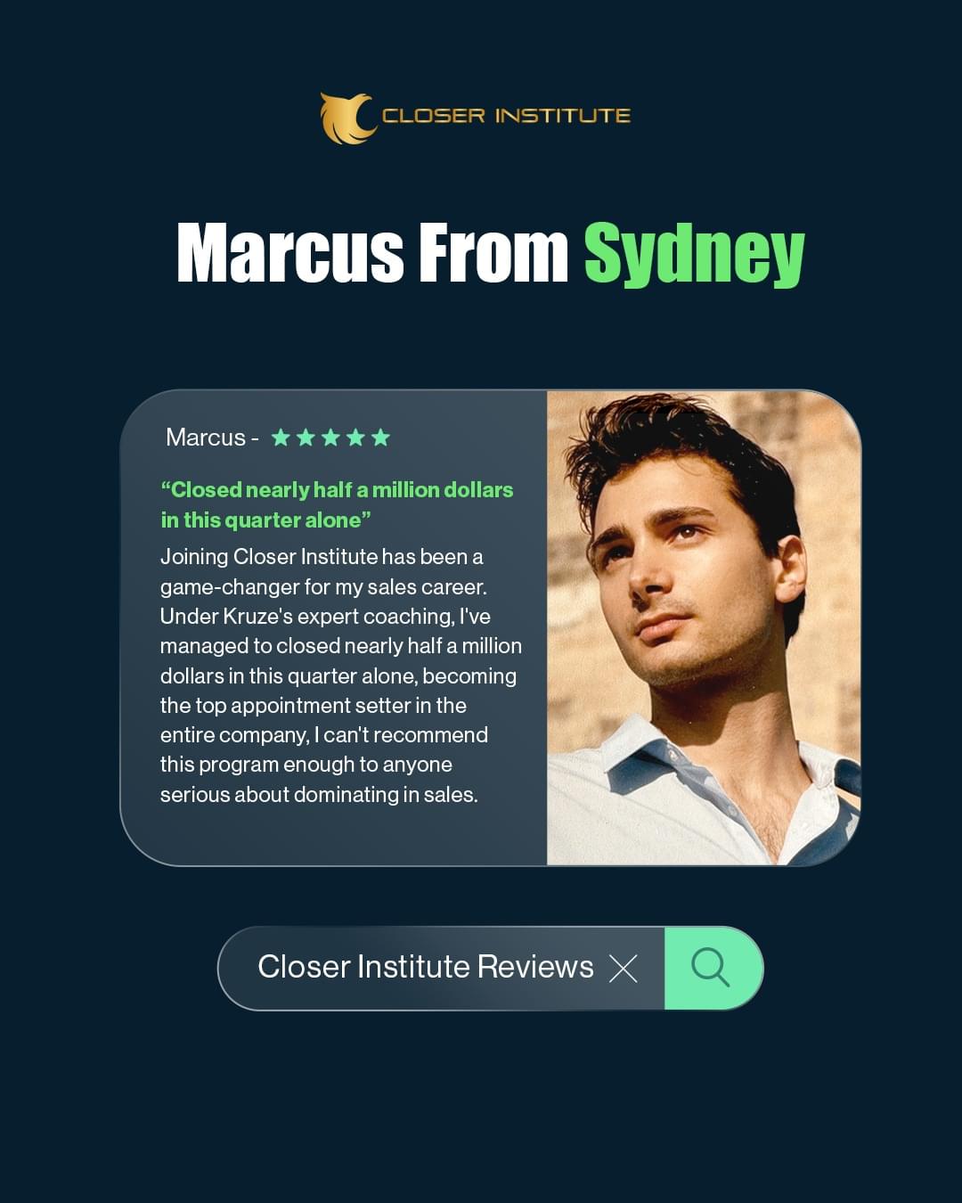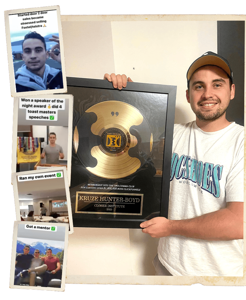 My Name is Kruze Hunter-Boyd I'm the founder of Closer Institute, Award Winning Sales Person & creator of the 100K System which has generated over 100M in sales in 2 Years
