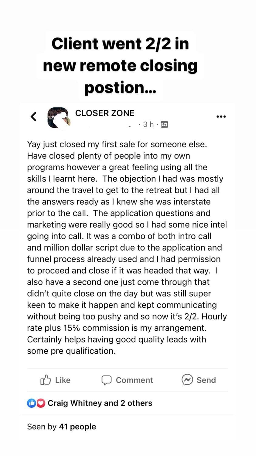 Best Part: You do NOT need any special background, prior skills or education to become an online appointment setter or closer other than the commitment to use the skill.