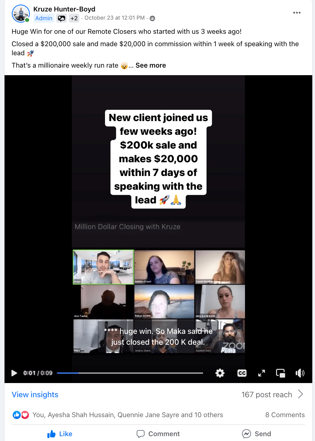I’ve trained over 1000 people and we've become the fastest growing remote sales training company.